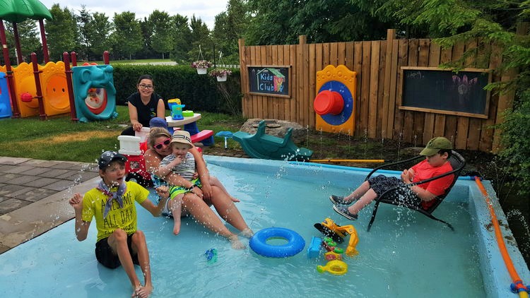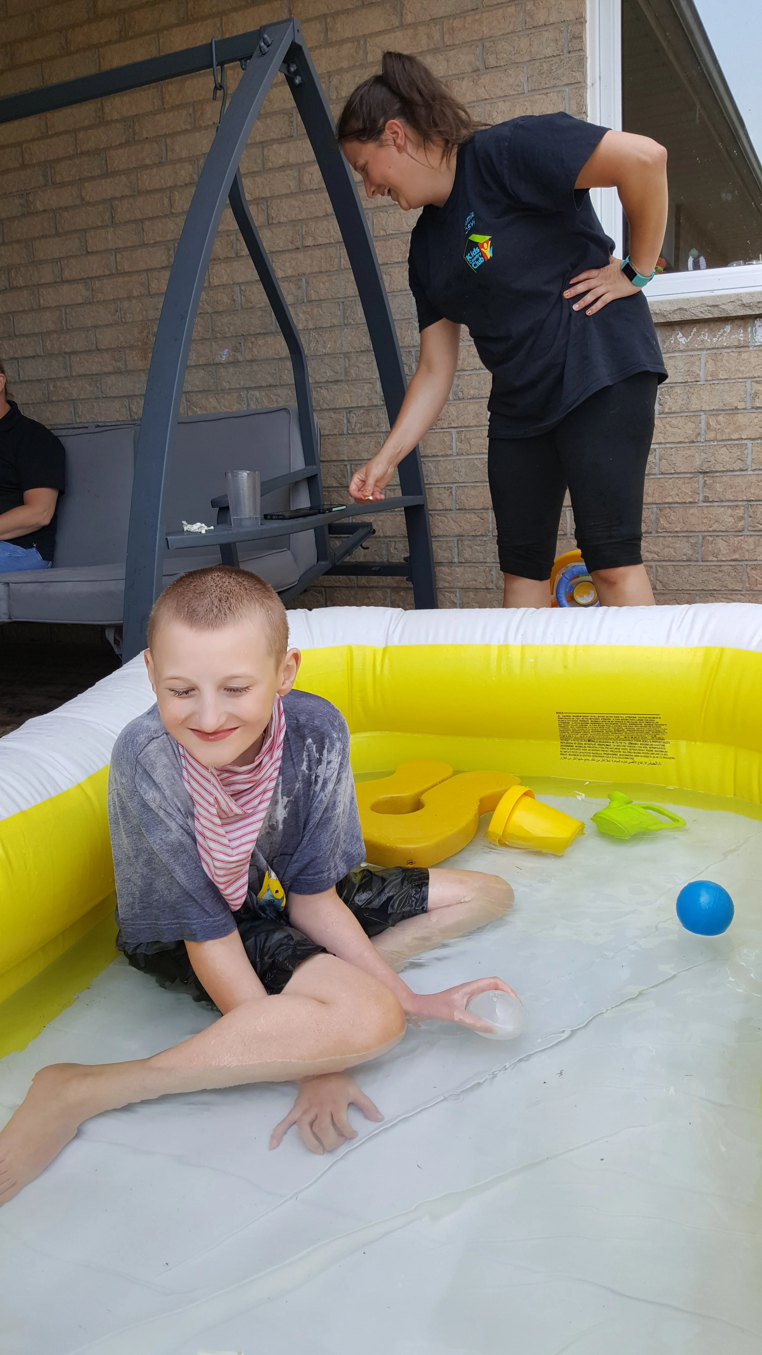 Even on rainy days it's fun to pull out the pool and play. Someone found it so relaxing they grabbed a nice little nap:-)